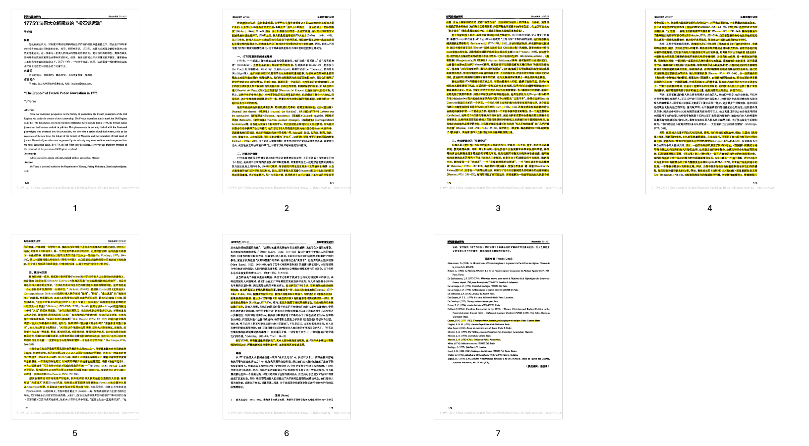 关于于艳茹论文抄袭的公告 本刊近期接到读者举报,称于艳茹的论文《1775年法国大众新闻业的”投石党运动”》涉嫌抄袭。本刊对此进行认真调查和核实后,现将相关情况公告如下: 1.论文《1775年法国大众新闻业的”投石党运动”》发表于《国际新闻界》2013年第7期,作者署名于艳茹,刊时为北京大学历史学系博士生。 2.论文《“Frondeur” Journalism in the 1770s: Theater Criticism and Radical Politics in the Prerevolutionary French Press》发表于《Eighteenth-Century Studies》1984年第4期,作者署名为Nina R. Gelbart。