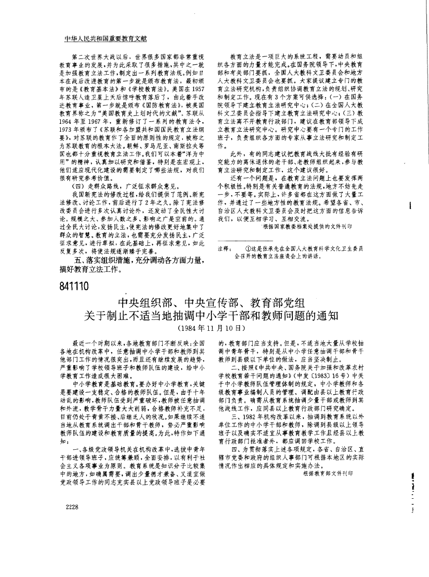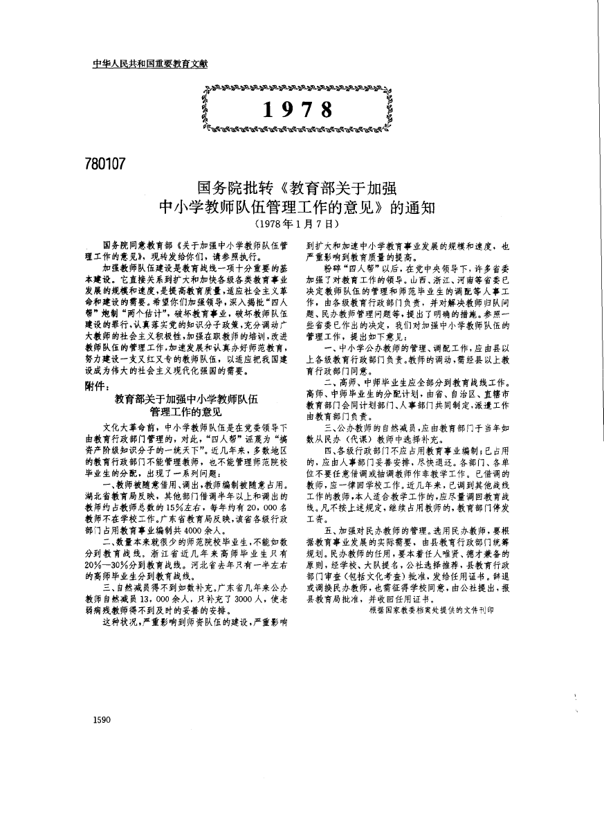 国务院批转教育部、国家劳动总局关于中等教育结构改革的报告的通知(1980年)