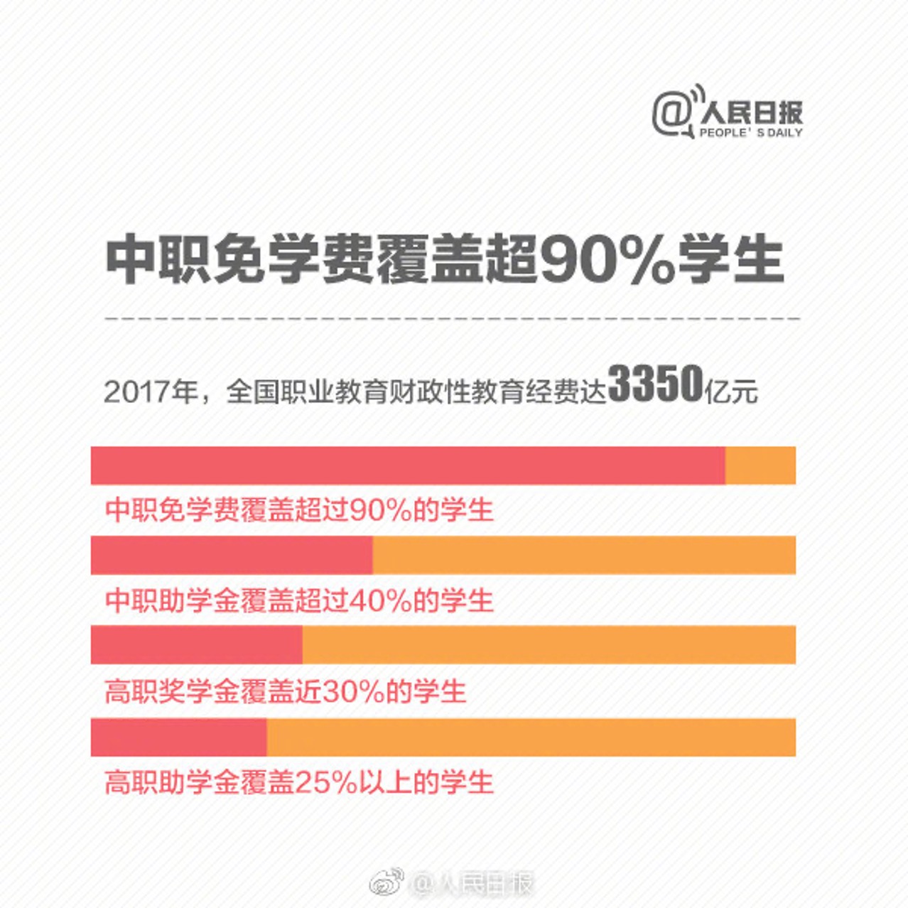 2012年,四部委又印发《关于扩大中等职业教育免学费政策范围进一步完善国家助学金制度的意见》,规定从2012年秋季学期起,对公办中等职业学校全日制正式学籍一、二、三年级在校生中所有农村(含县镇)学生、城市涉农专业学生和家庭经济困难学生免除学费(艺术类相关表演专业学生除外);将中等职业学校国家助学金资助对象由全日制正式学籍一、二年级在校农村(含县镇)学生和城市家庭经济困难学生,分步调整为全日制正式学籍一、二年级在校涉农专业学生和非涉农专业家庭经济困难学生。