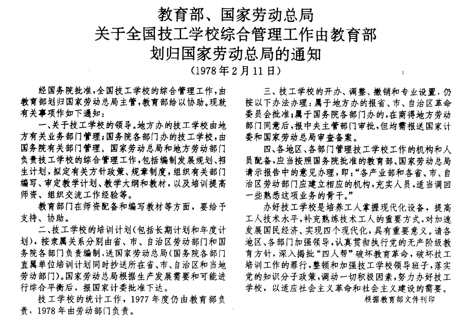 ——国务院批转教育部、国家劳动总局关于中等教育结构改革的报告的通知(1980年)