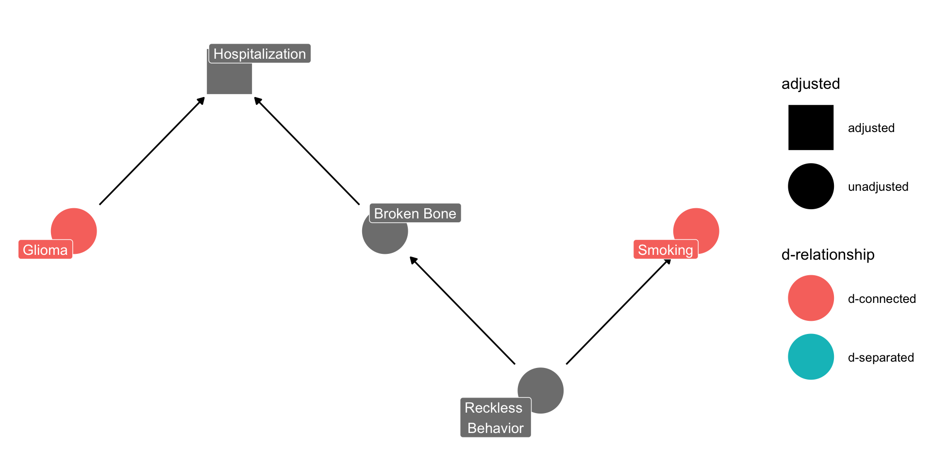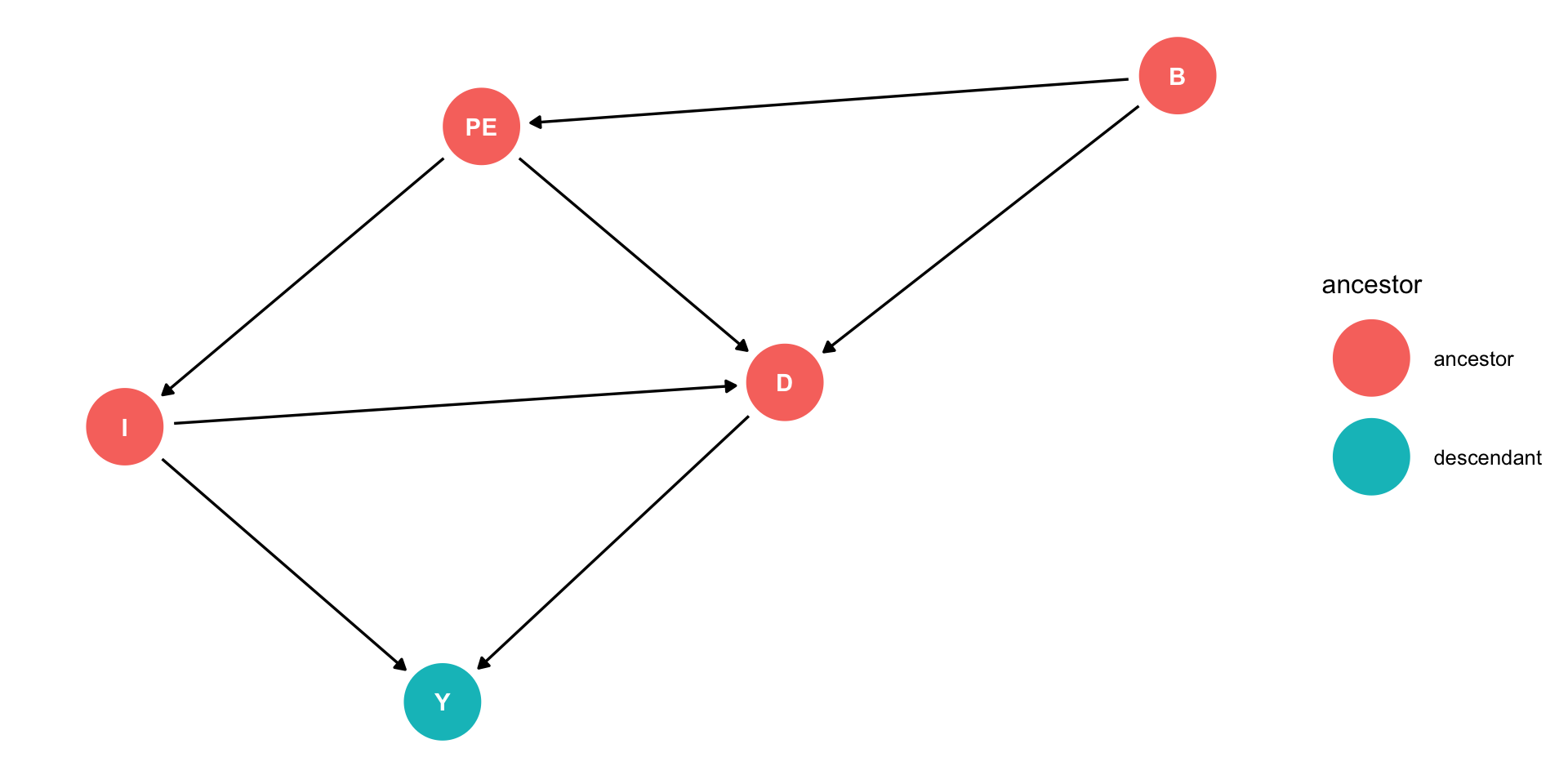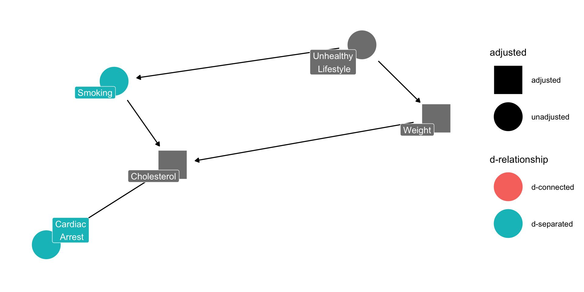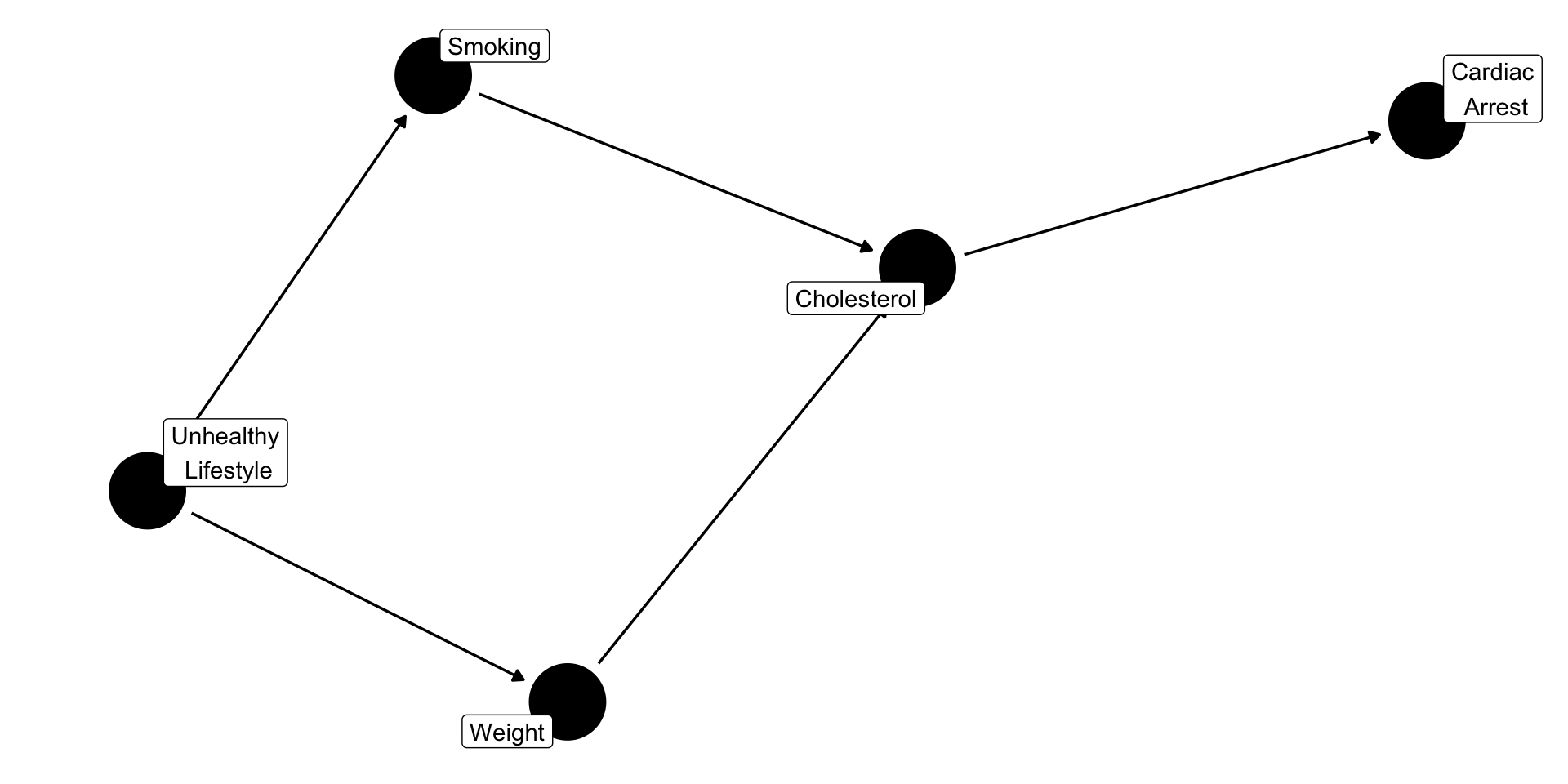 The assumptions take the form of lines (edges) going from one node to another.