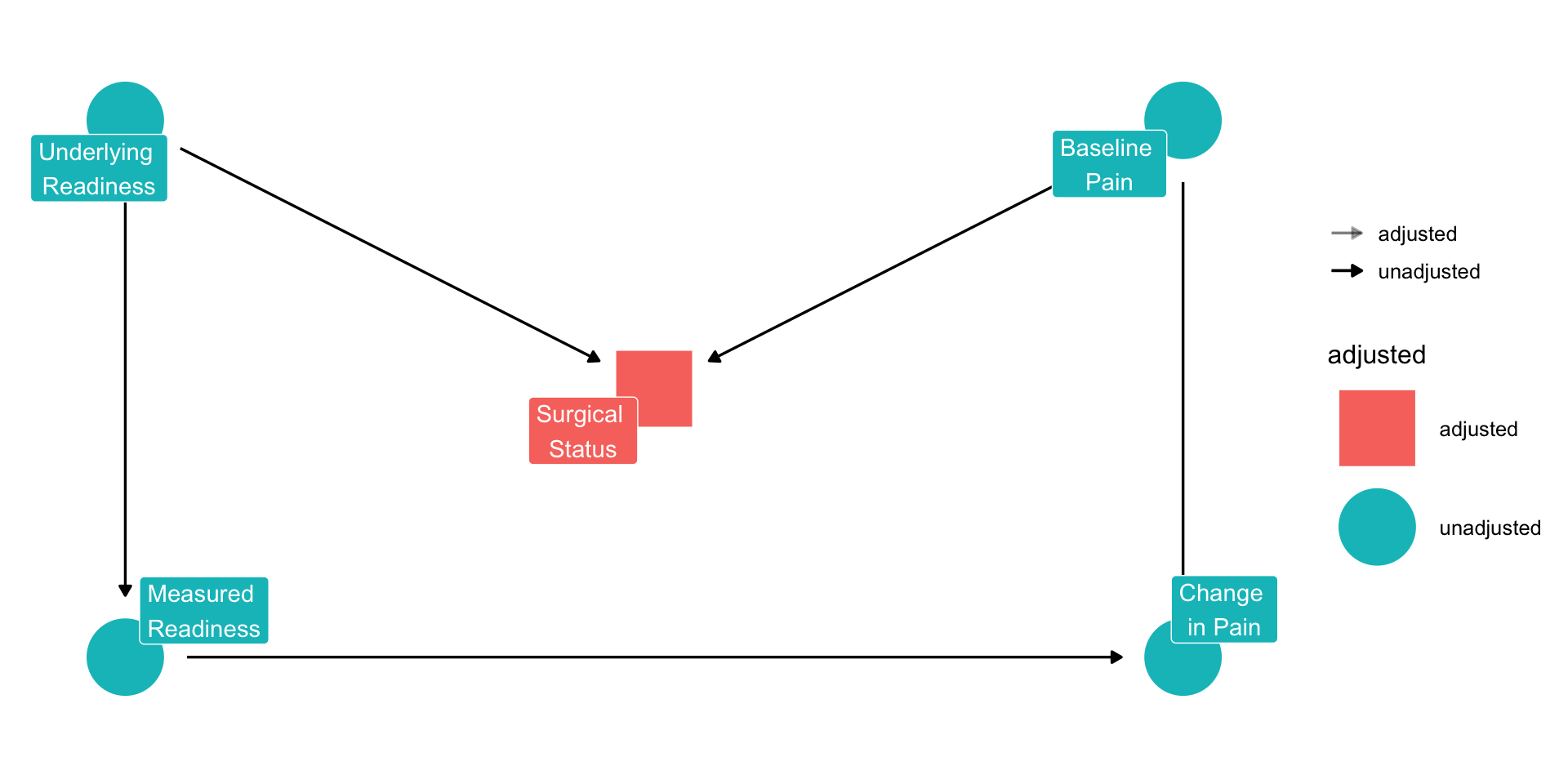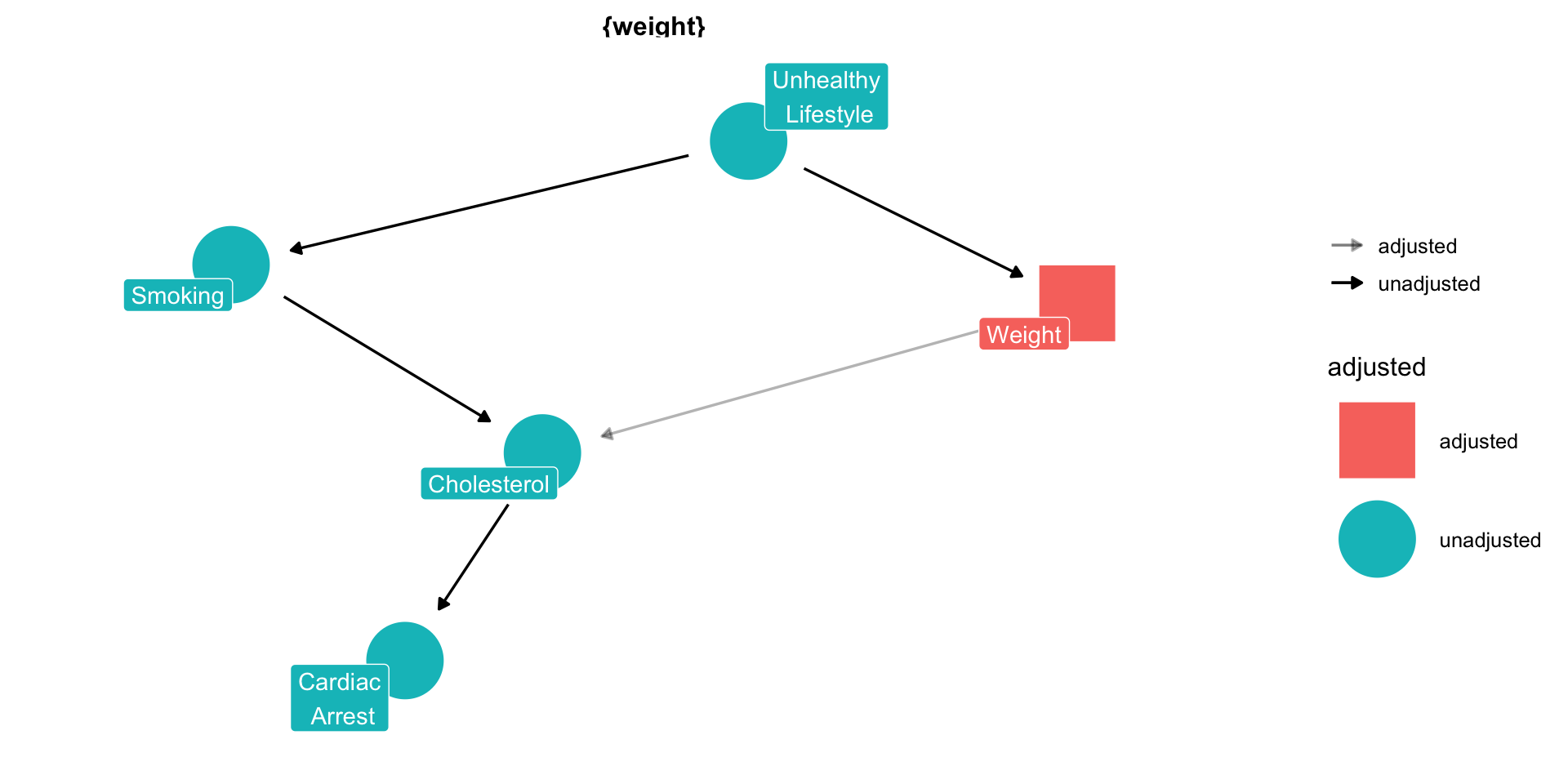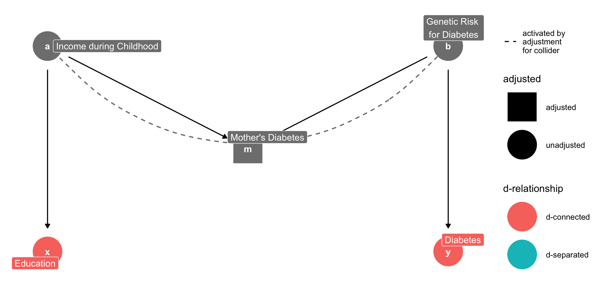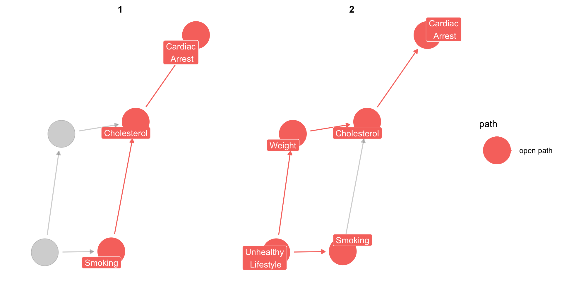 The assumptions take the form of lines (edges) going from one node to another.